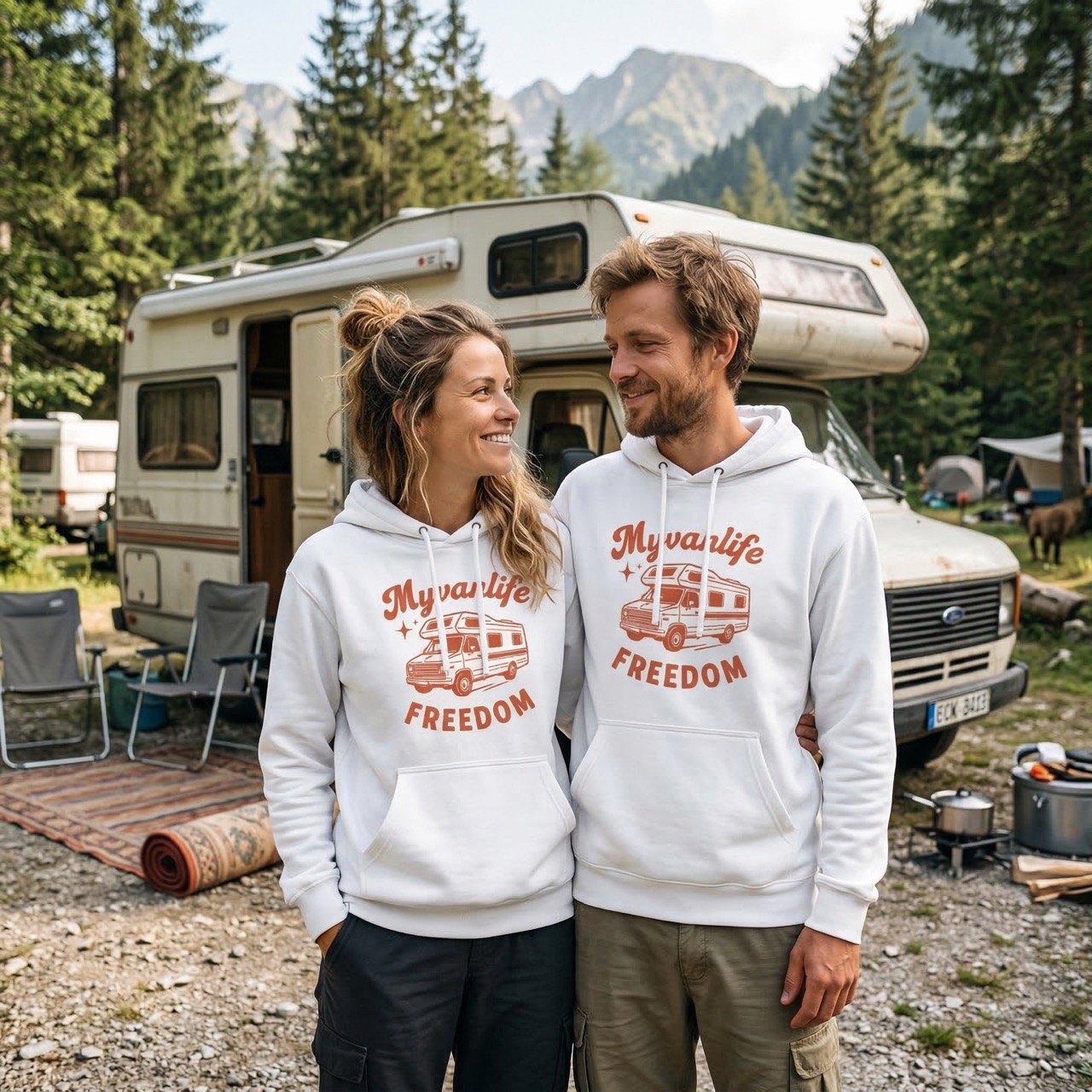 Bluza z kapturem MyVanlife to nie tylko wygodne ubranie — to sposób myślenia, życie bez ograniczeń i wolność w czystej formie.