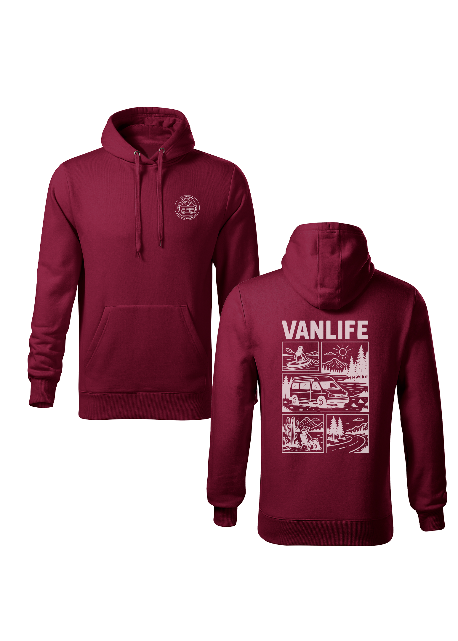 Bluza z kapturem Vanlife Burgund – dla tych, którzy żyją w drodze