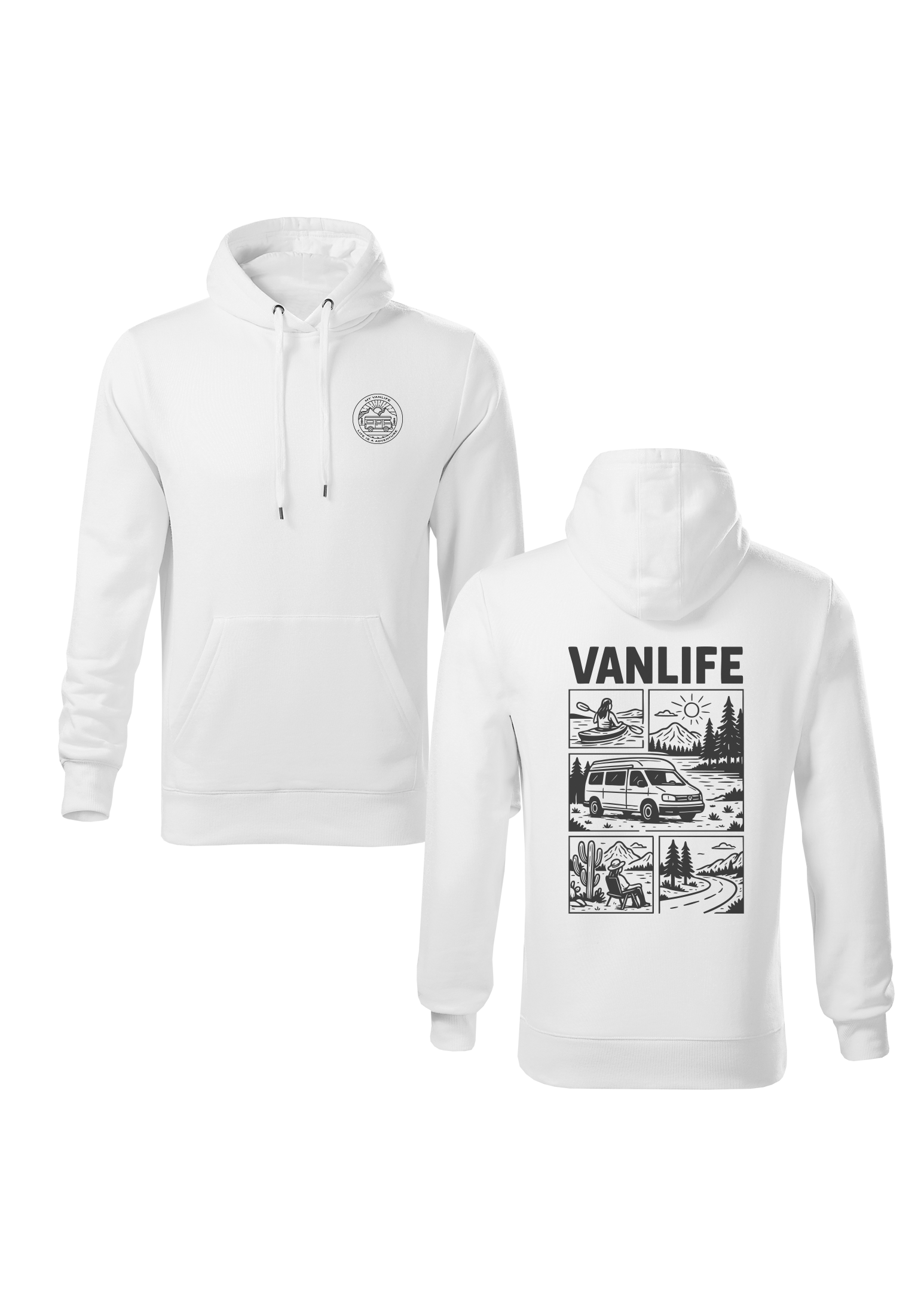 Bluza z kapturem Vanlife White – dla tych, którzy żyją w drodze